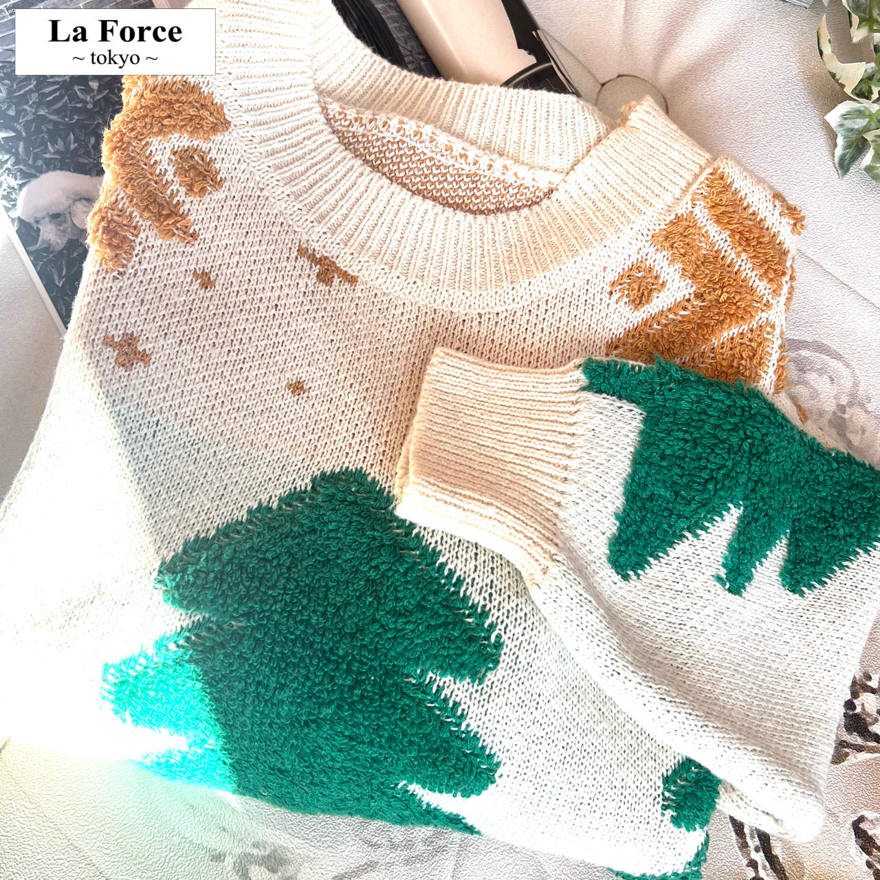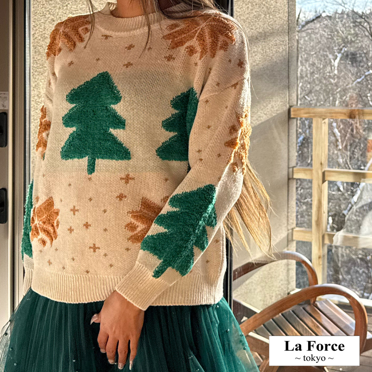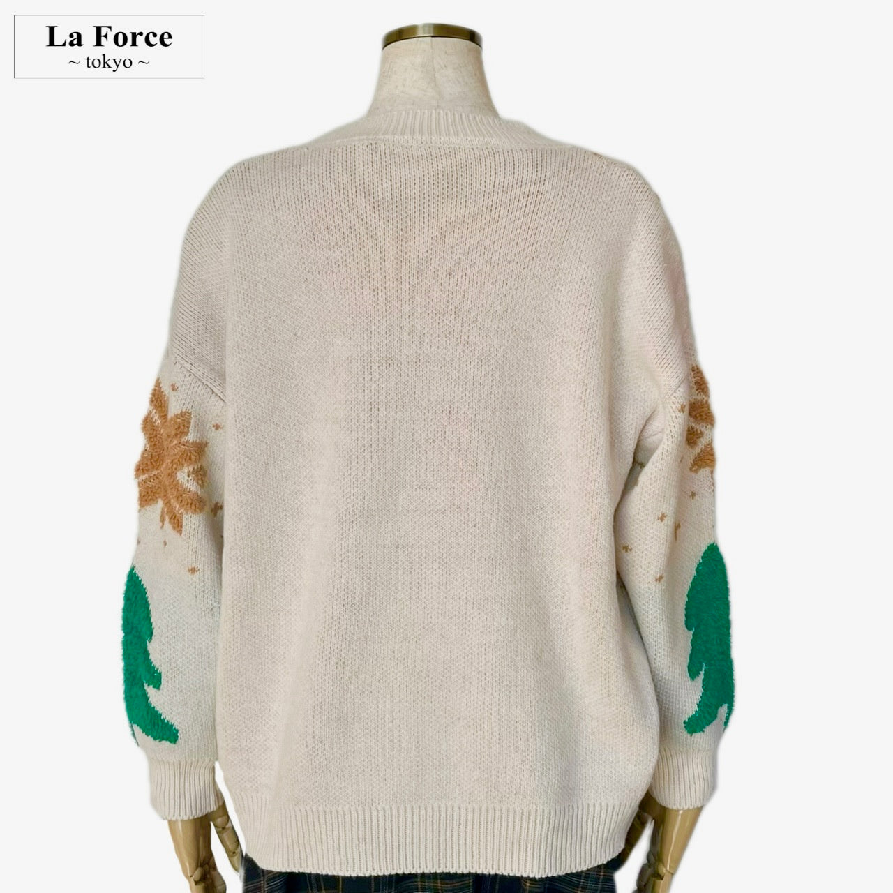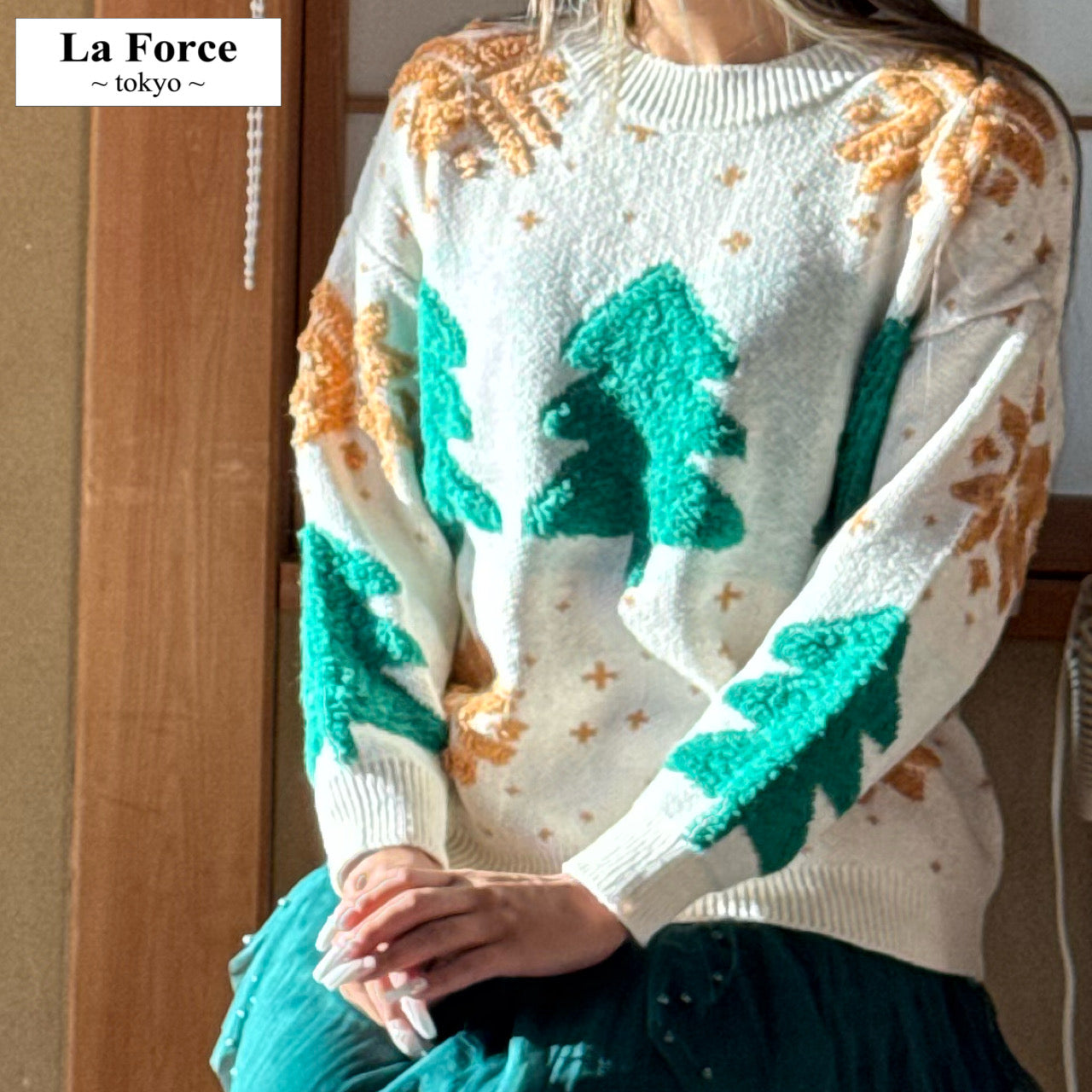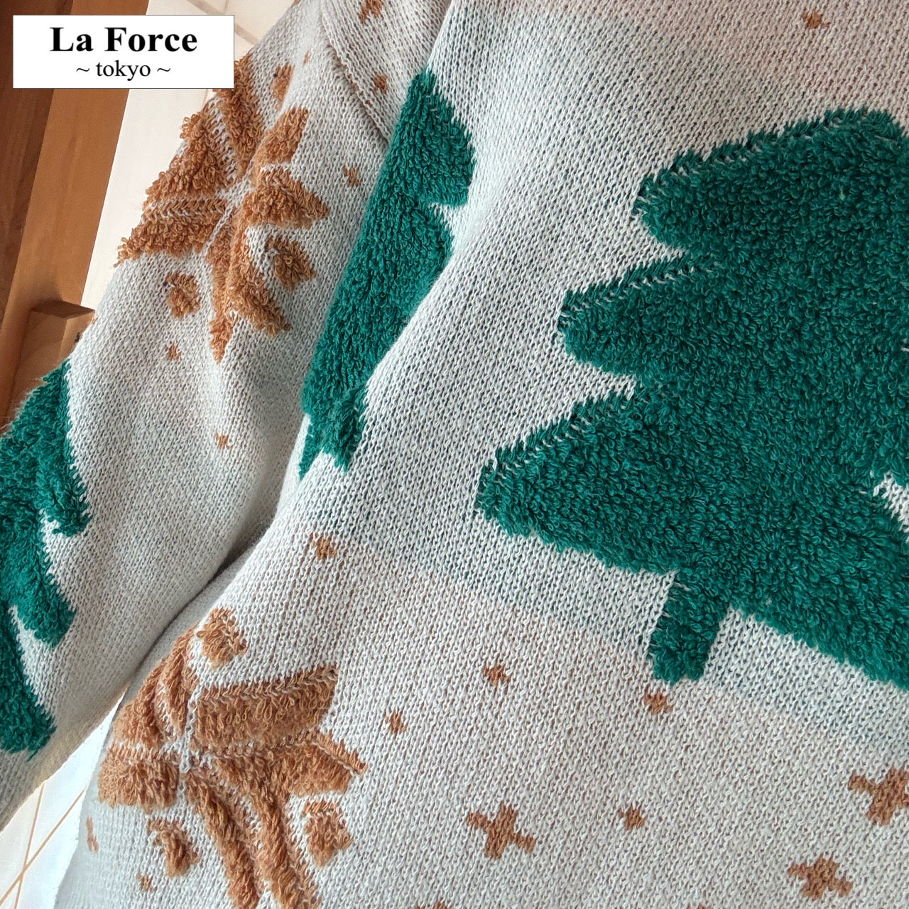 もこもこのクリスマスツリーと雪の結晶をモチーフにして、着るだけで気分が上がるレトロテイストなプルオーバー♪