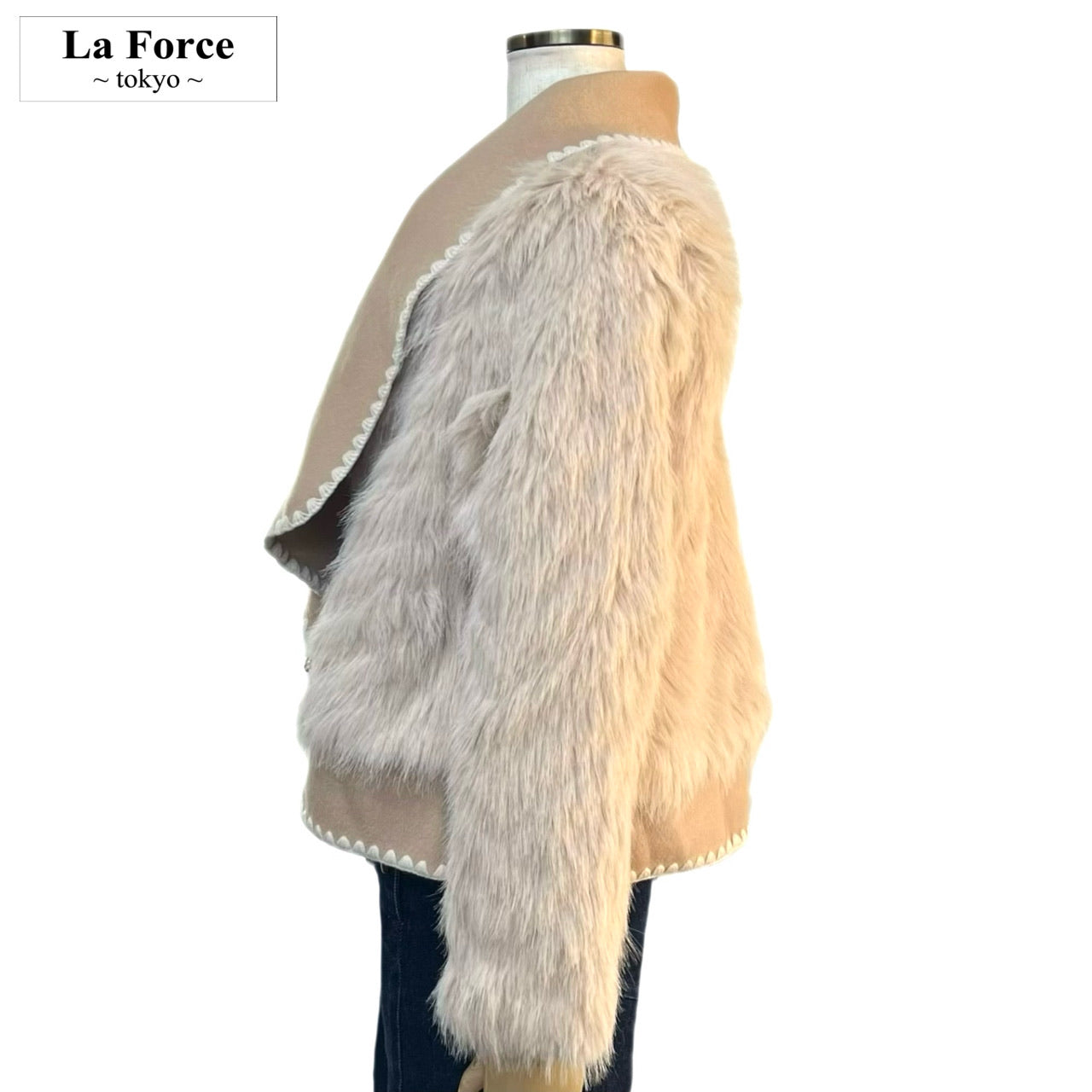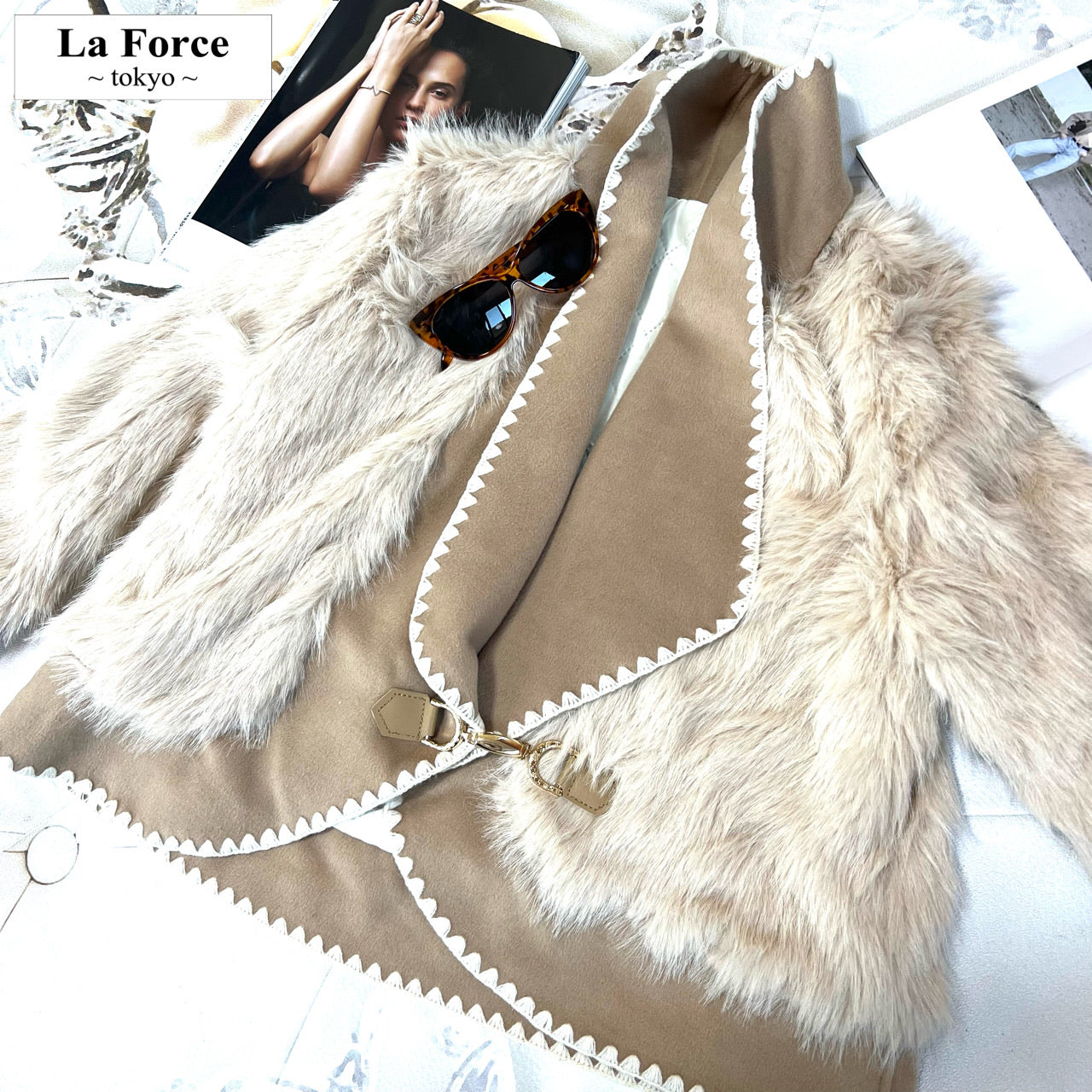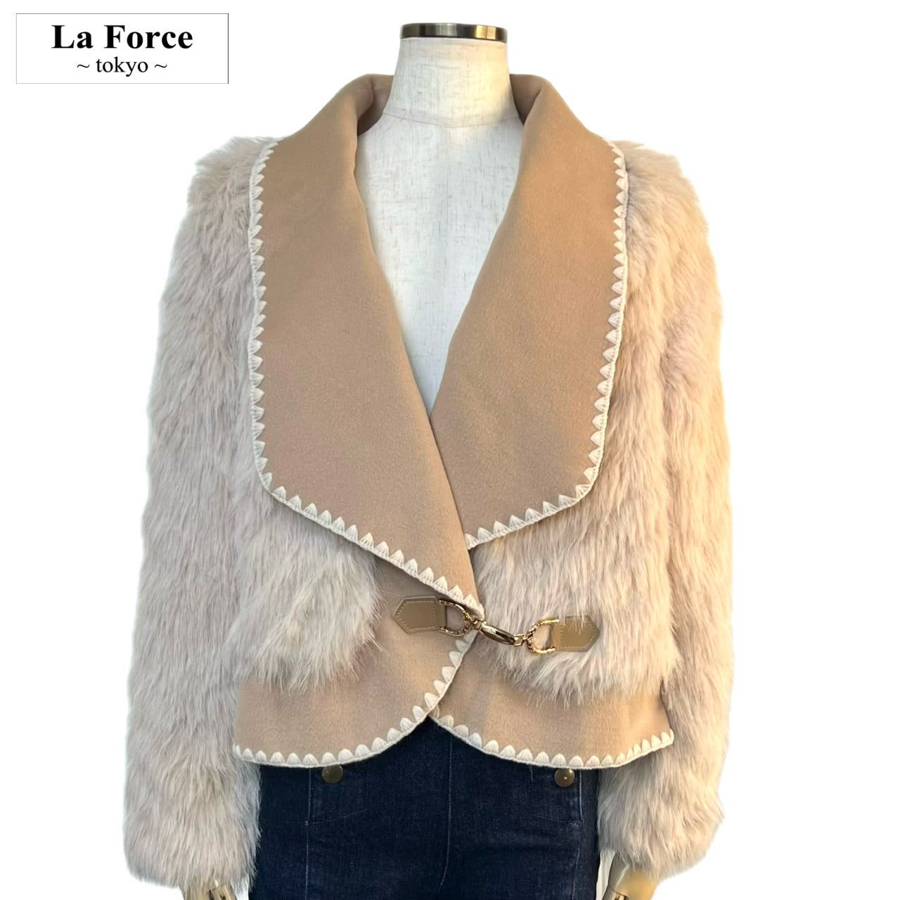フェイクファーとスエード調素材を大胆にドッキングさせた、羽織るだけで華やかで上品な印象を与えるショートコート♪
