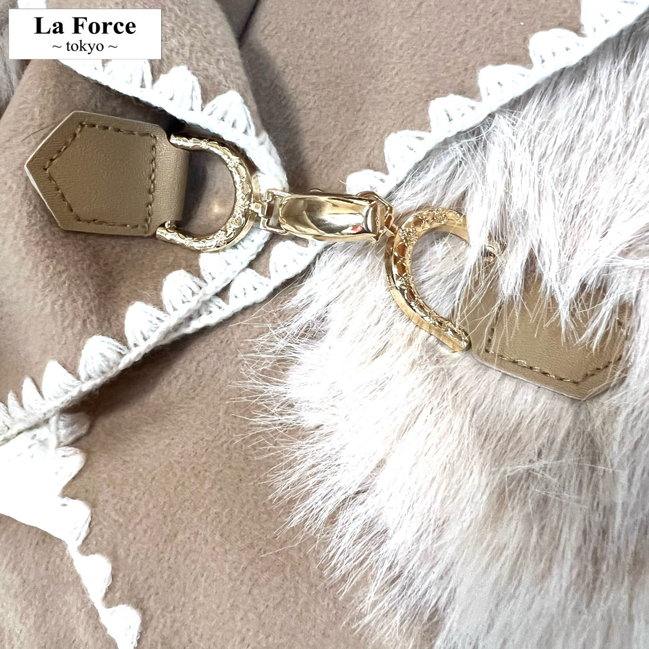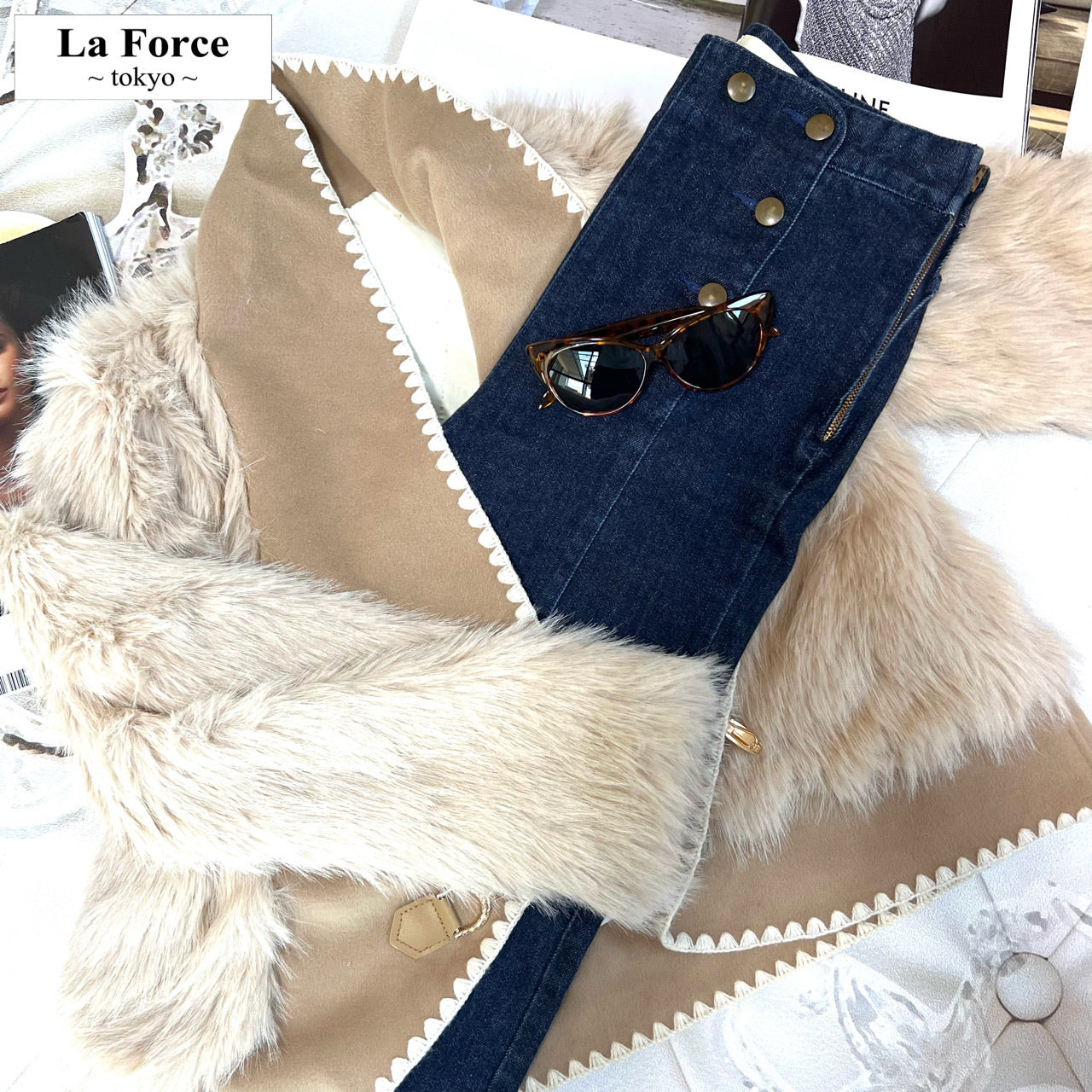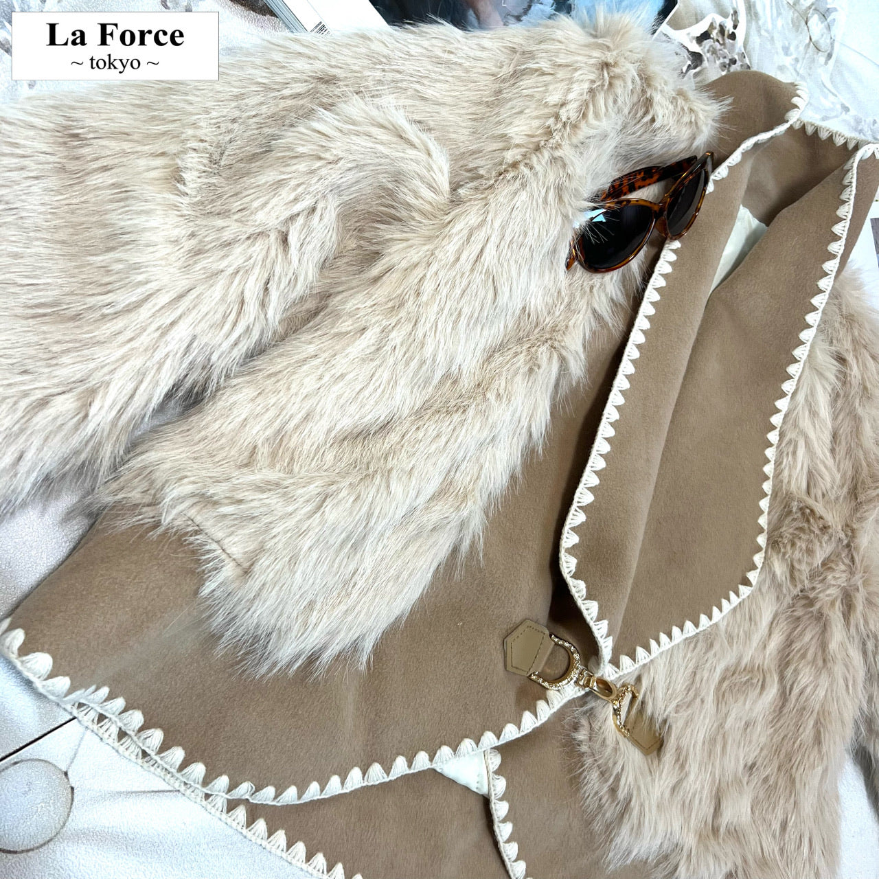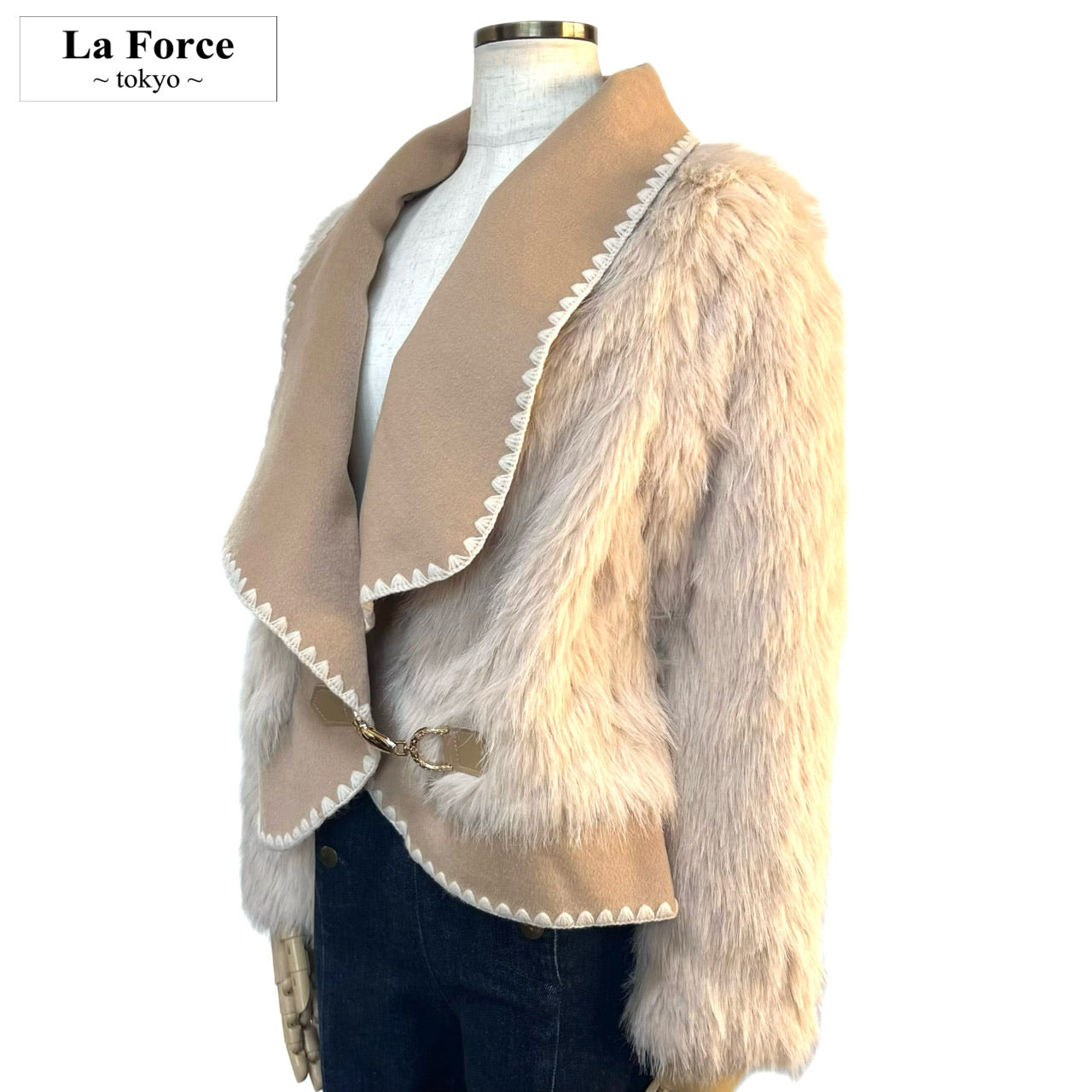 フェイクファーとスエード調素材を大胆にドッキングさせた、羽織るだけで華やかで上品な印象を与えるショートコート♪