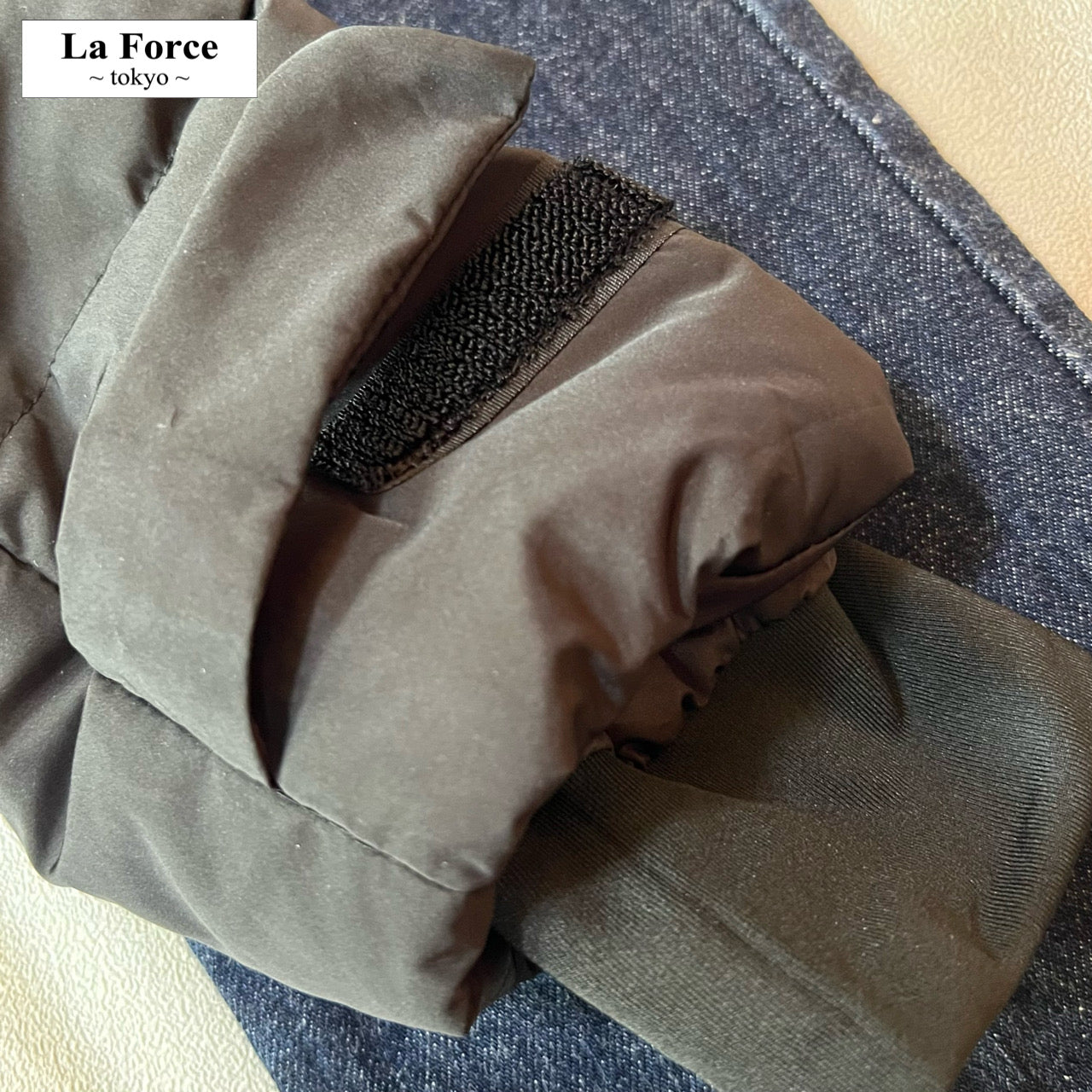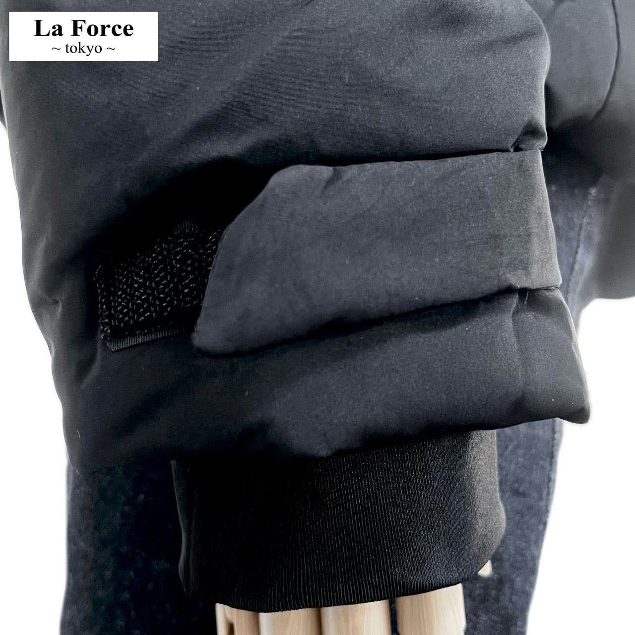 風の侵入を防ぐ高い襟、リブ&マジックテープでしっかりフィットした袖口、ボリューム感のあるフードなど、機能的な防寒仕様。