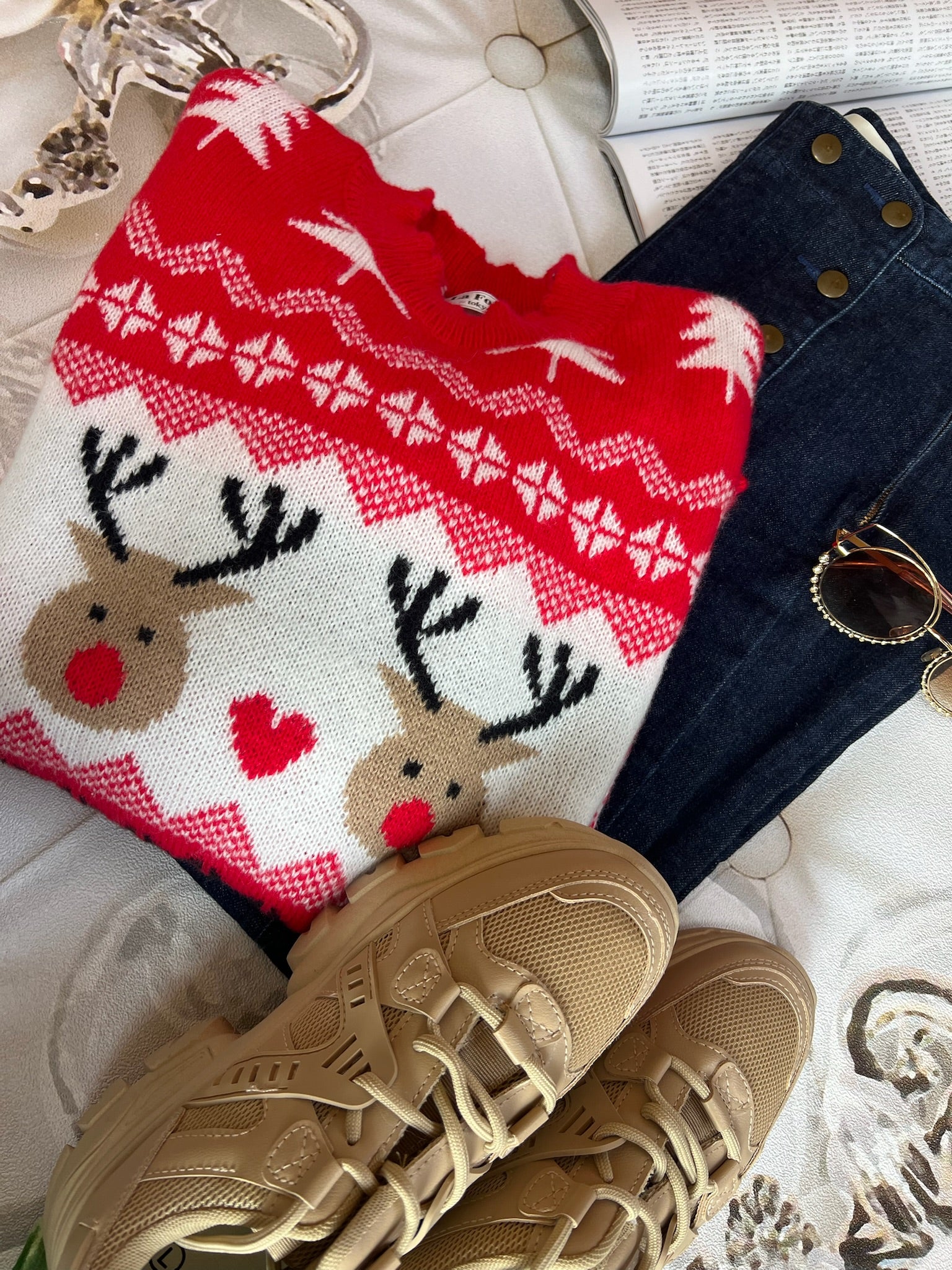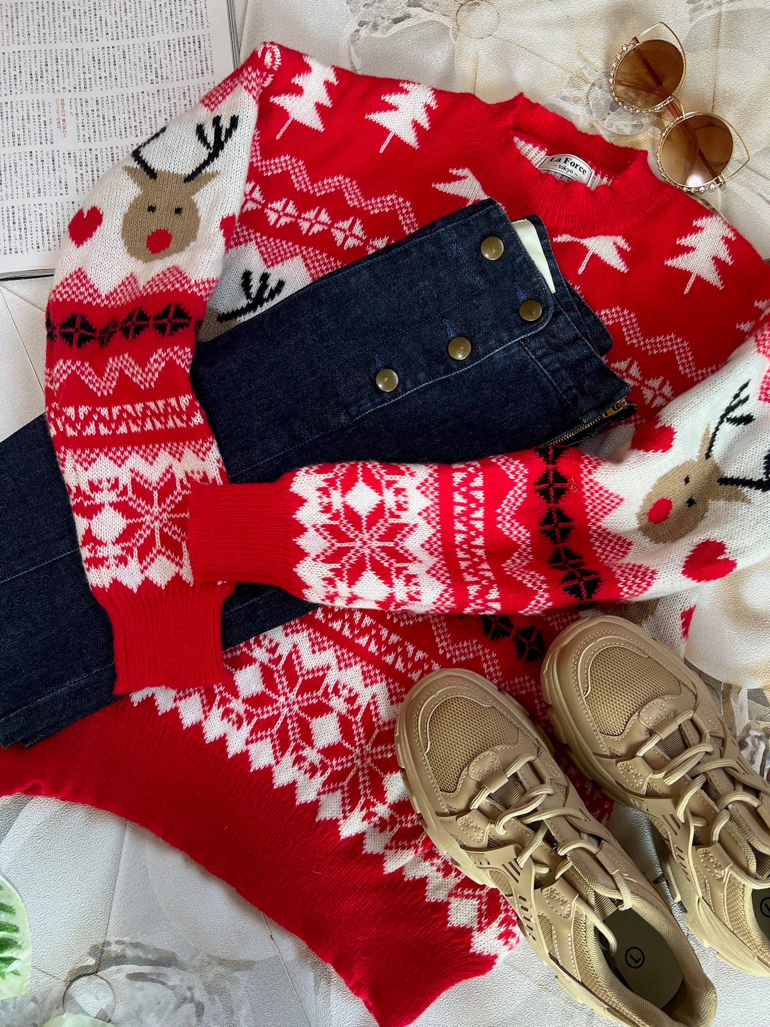 キュートなトナカイが目を惹く、この冬トレンドのノルディック柄プルオーバー。