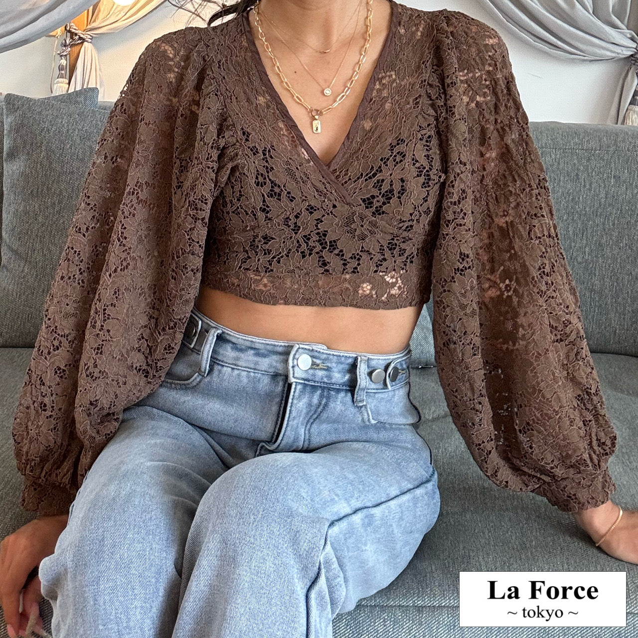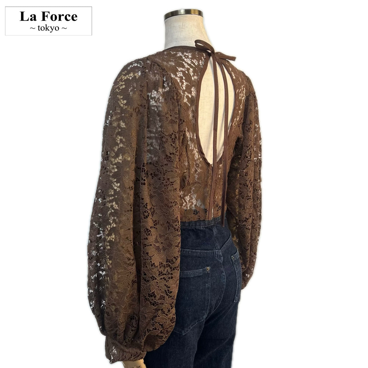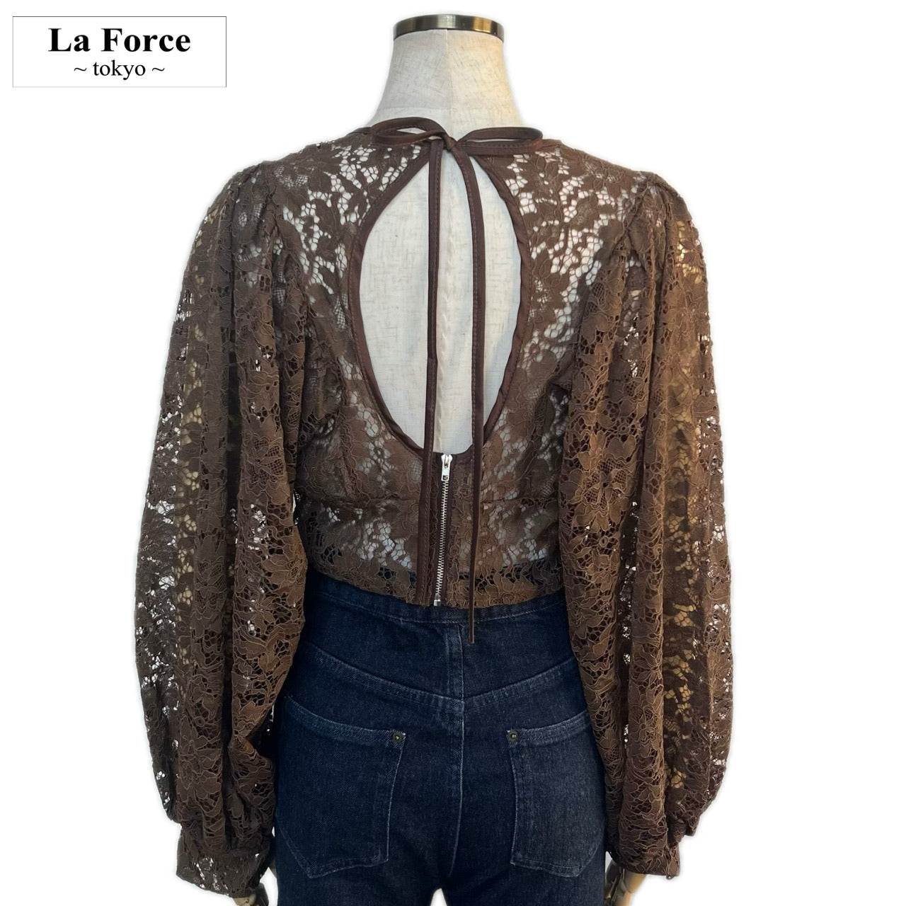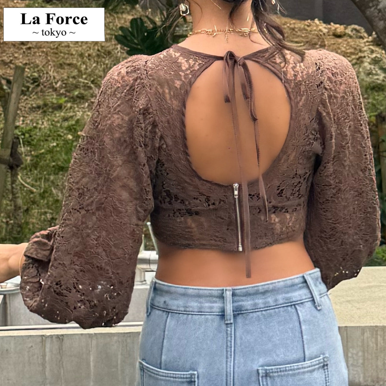 洗練された総レースに、トレンドのオープンバックデザインが目を惹く、女性らしさを引き立てる上品なトップス♪
